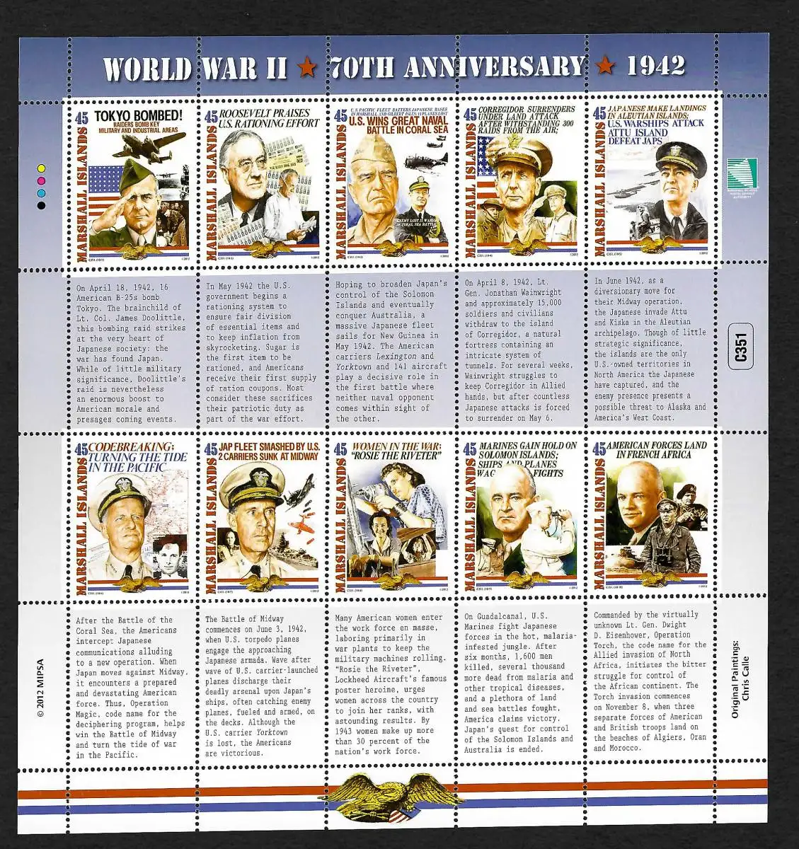 Îles Marshall: 70 ans II Guerre mondiale, 1942, arc de petit format, frais de port
