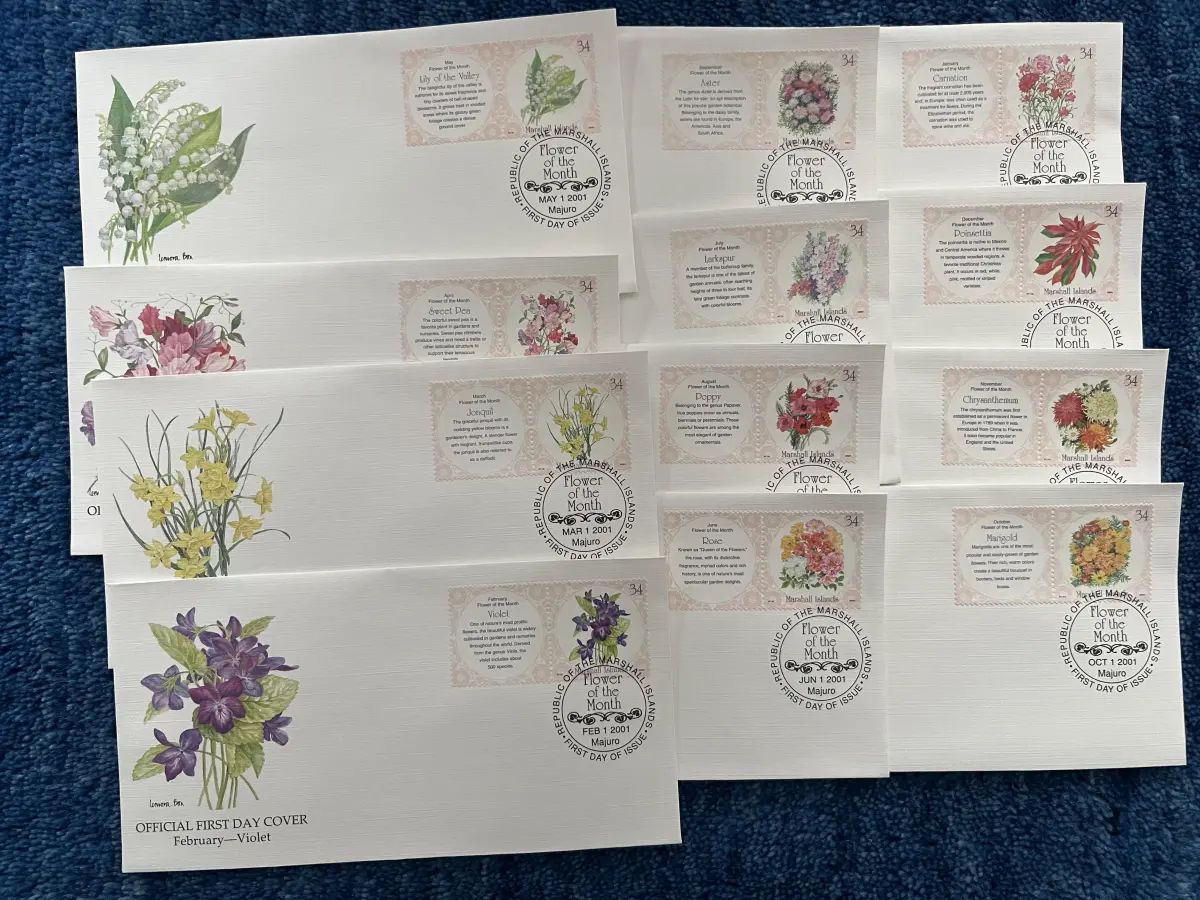 Marshall Inseln: Blumen für alle 12 Monate, 12 FDC
