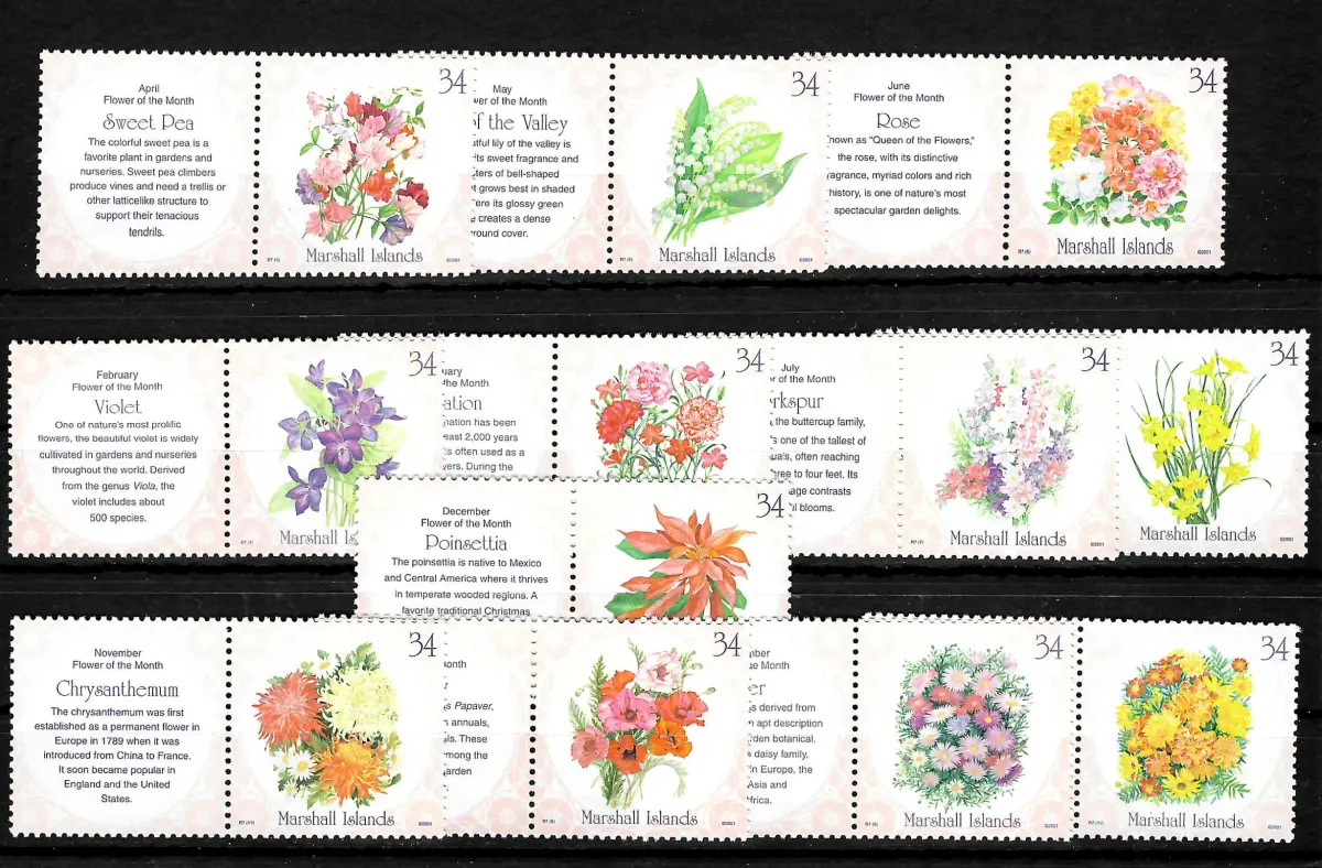 Marshall Inseln: Blumen für alle 12 Monate, postfrisch