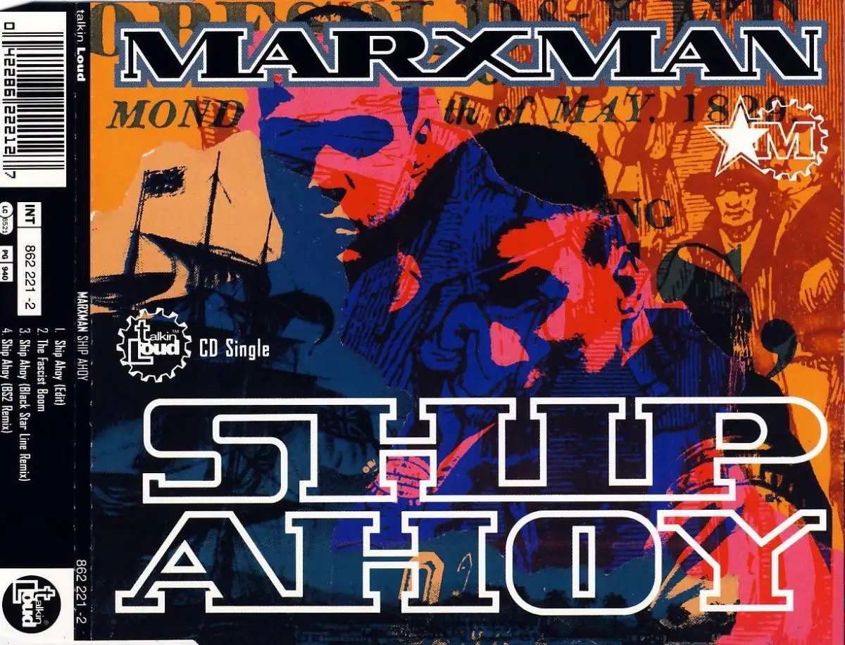 CD Single Marxman - Ship Ahoy, incl. German Info-Sheet, État CD M- Hülle M; Fabriqué en Germany 1993 Talkin Loud 862 221-2, Tracks [Edit] 4:01, The Fascist Boom 4:02, [Black Star Line Remix] 5:41, _BS2 Remix] 4.07