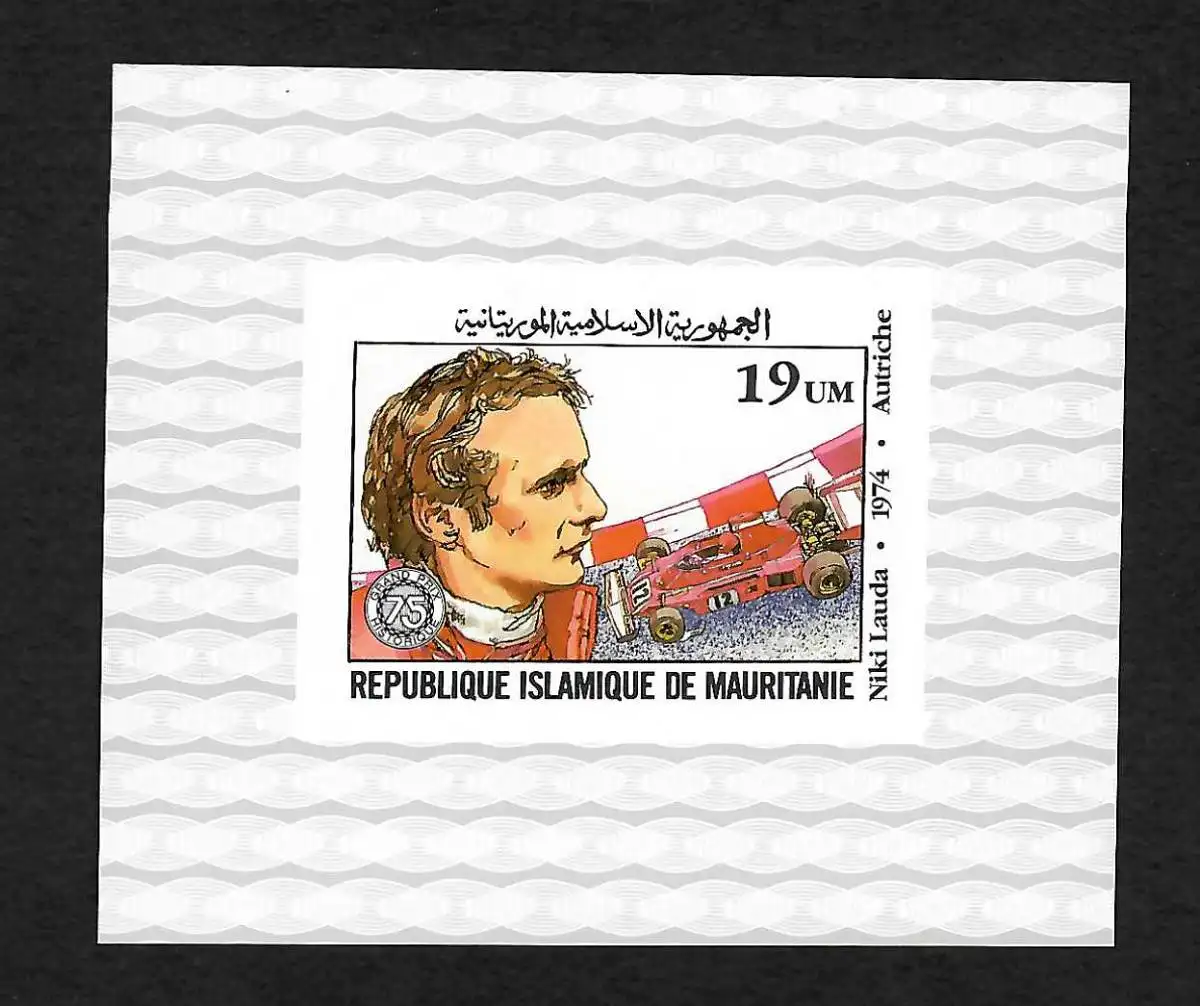 Mauritanie: Formule 1, Niki Lausa, timbres bloc 1974, frais de poste