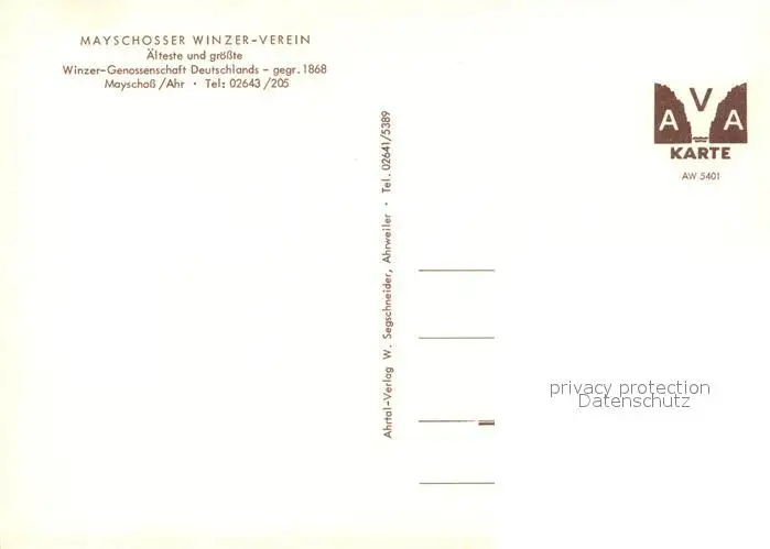 Mayschoss Mayschosser Winzerkeller Gaststube Mayschoss postalisch nicht gelaufen nach 1965 Erhaltung siehe scans [WerneD78] WernPID7