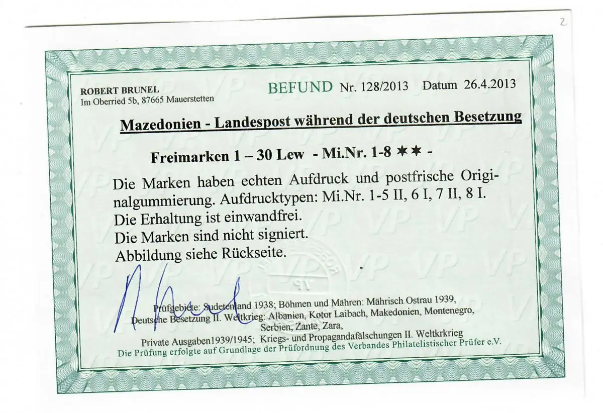 Macédoine: Min. 1-8, post-fraîchissement, **, différents types d'impression
