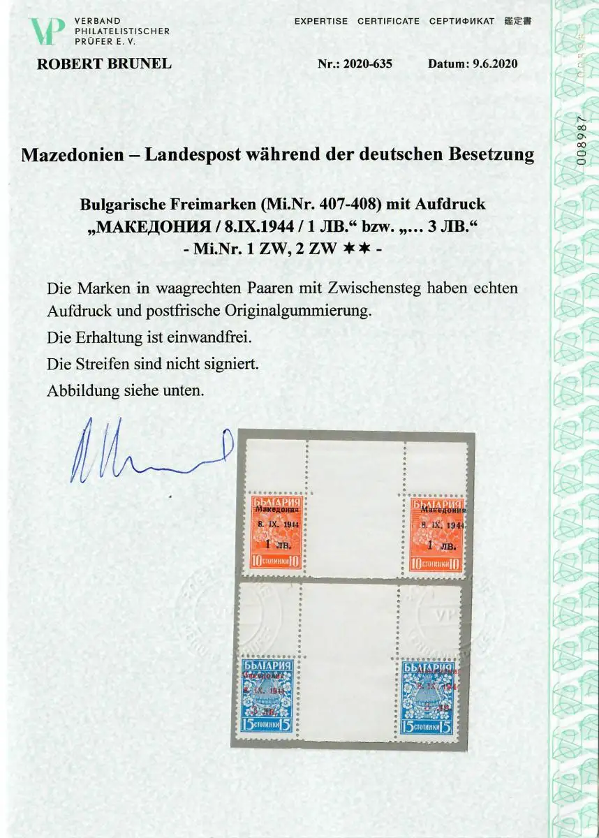 Macédoine: Min. 1 ZW, 2 ZZ, couple horizontal avec passerelle intermédiaire, frais de port, **