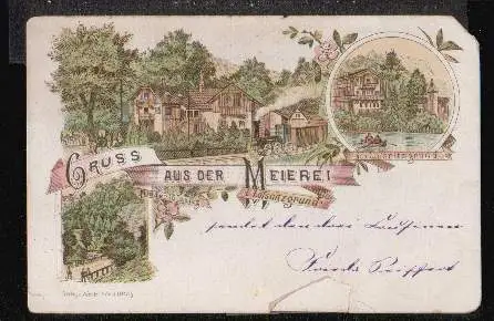 Meierei. Gruss aus . - Gelaufen 1895, Rechts oben kl. Verlust. Unten Knick. (NPLZ 17192)