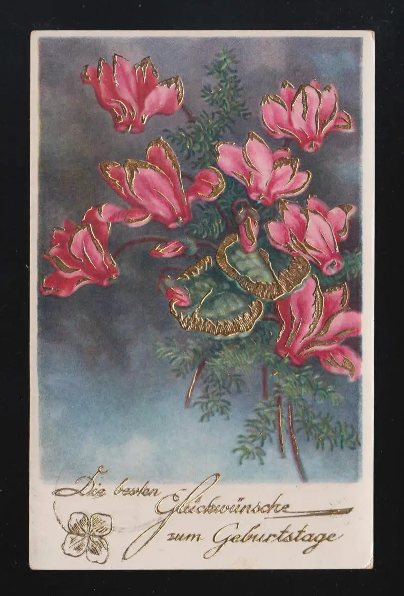Meilleures félicitations Anniversaire Fleurs rouges avec de l'or, Jüterbog 12.9.1936