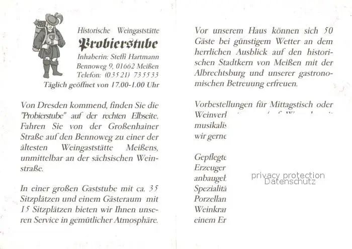 Meissen_Elbe_Sachsen Historische Weingaststaette Probierstube Meissen_Elbe_Sachsen postalisch nicht gelaufen nach 1965 Werbekarte (keine Postkarte) Erhaltung siehe scans [FriedD77] Werbekarte (keine Postkarte) Frierer