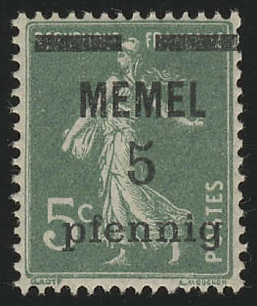 Memel 18b Impression 5 p. sur 5 C, papier blanc, ** frais de port
