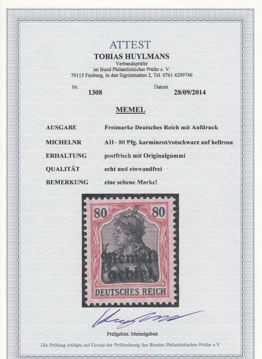Memel: MiNo AII, frais, ** avec BPP Attest