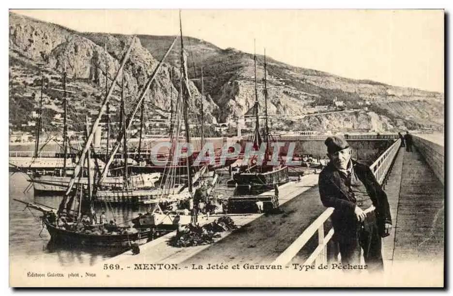 Menton - La Jetee et Garavan -Type de Pecheur - Cartes postales boat ship TOP