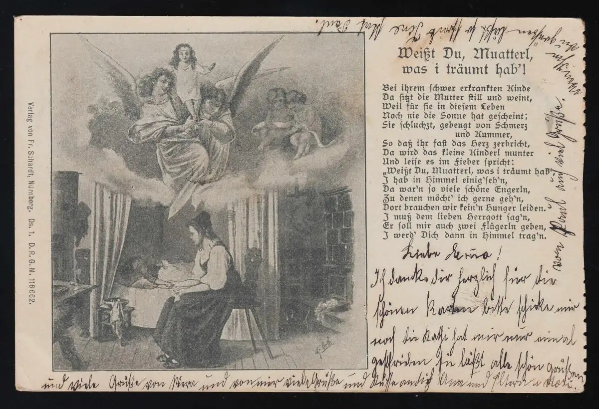 Mère lit bébé Ange Tu sais Muatterl was i rêver Avoir une petite cellule 17.10.1898