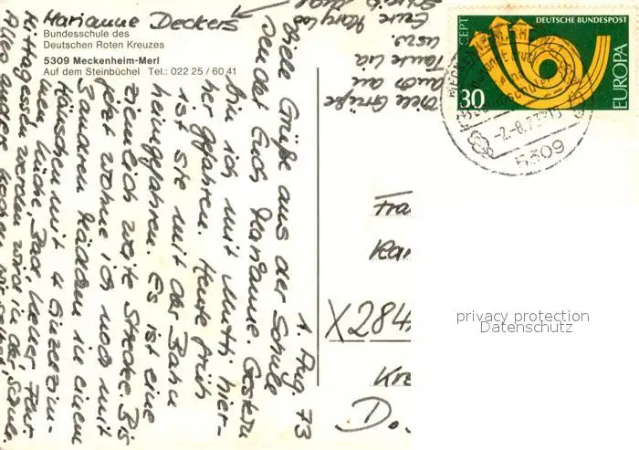 Merl Rheinbach Bundesschule DRK Merl postalisch gelaufen 1973 Erhaltung siehe scans [NatalD47] NataID47