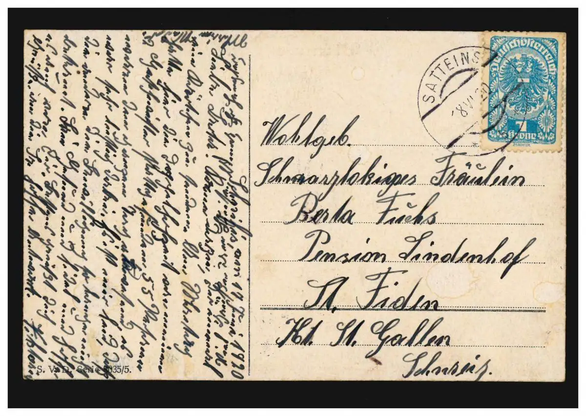 Message de fleurs d'amour-AK: Fille avec panier dans le bateau, SATTEIN 18.6.1920