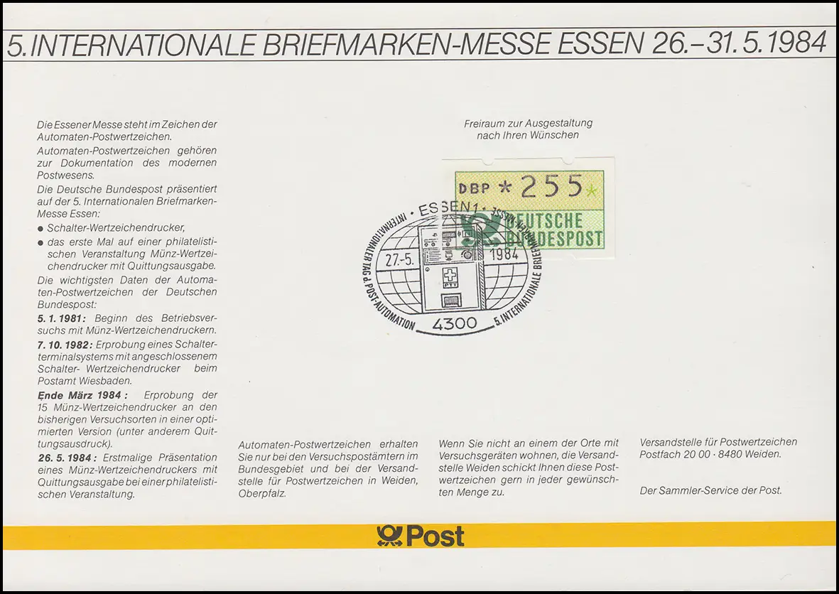 Carte de salon ATM Documentation 1981-1998 avec SSt ESSEN 27.5.1984