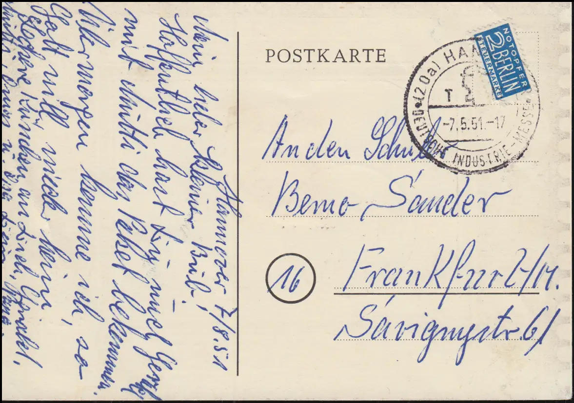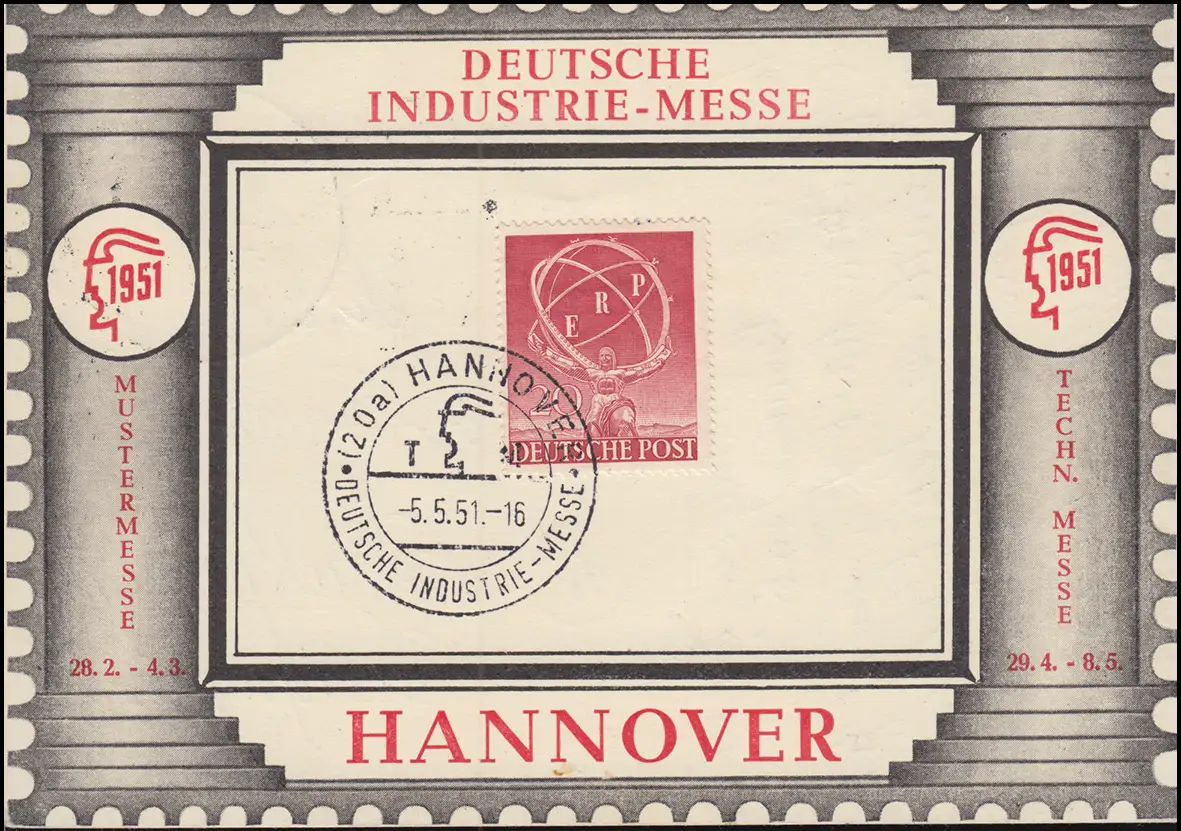 Carte de salons Deutsches Industrie-Fesse avec 71 ERP, SSt HANNOVER Foire 5.5.1951