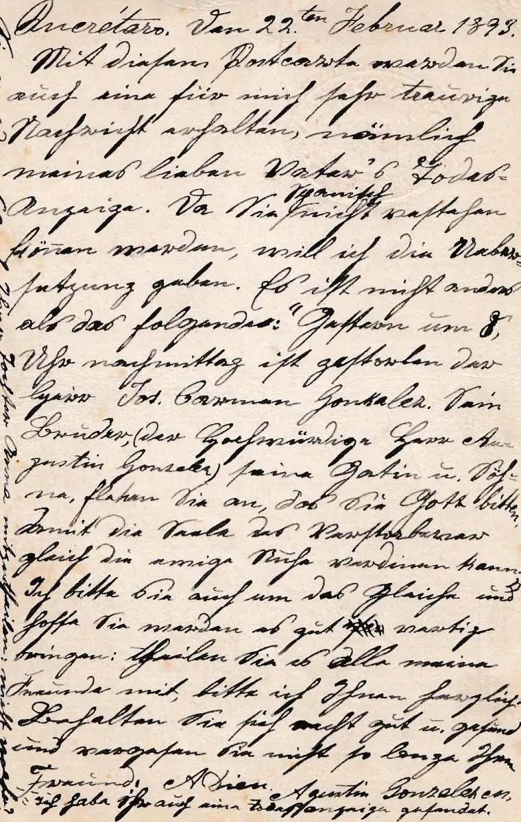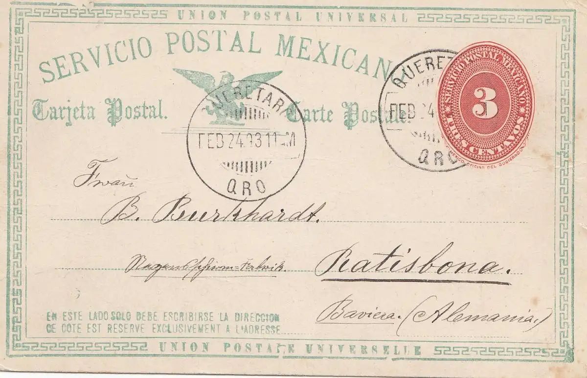 Mexique 1893: post card Querez to Ratisbona/Regensburg