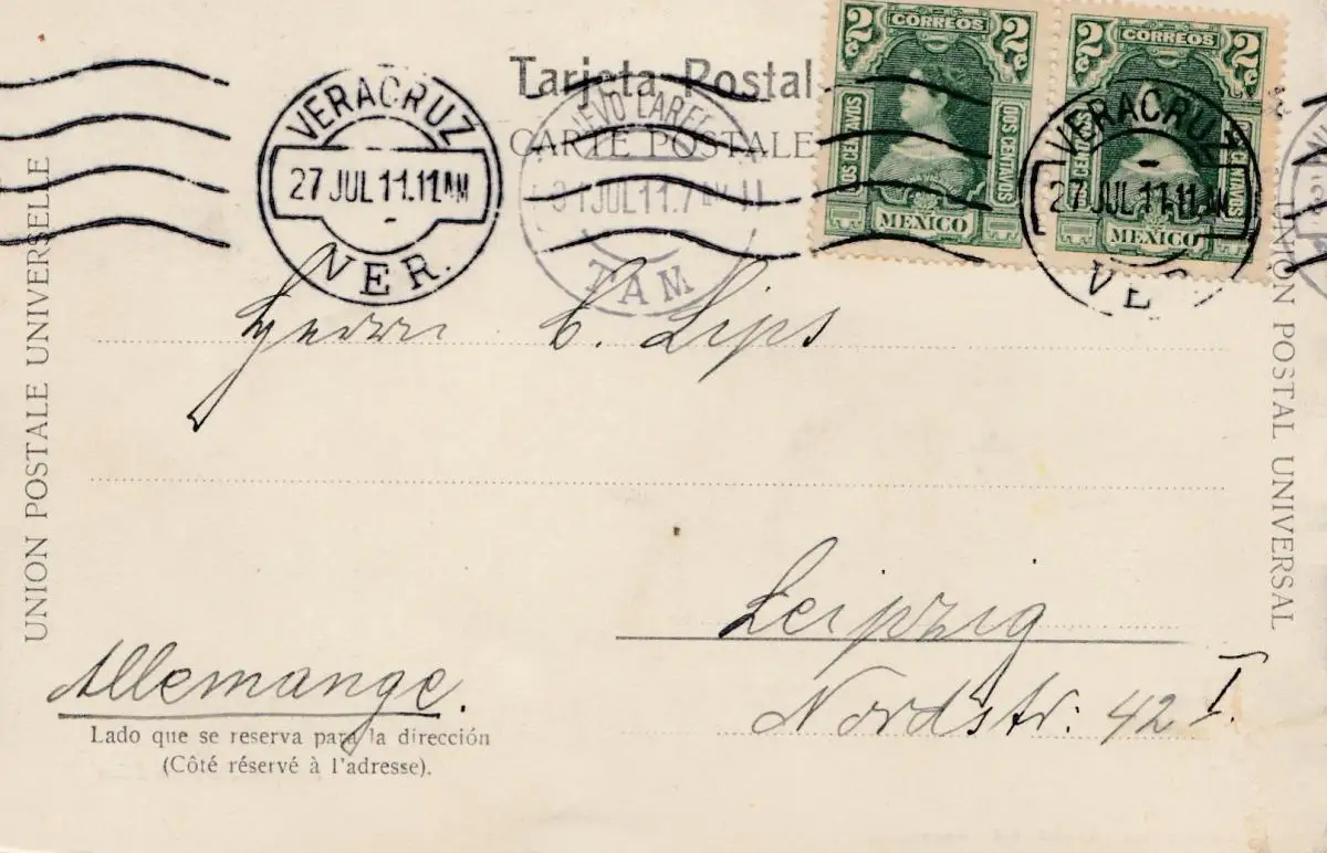 Mexico 1911: post card Veracruz to Leipzig