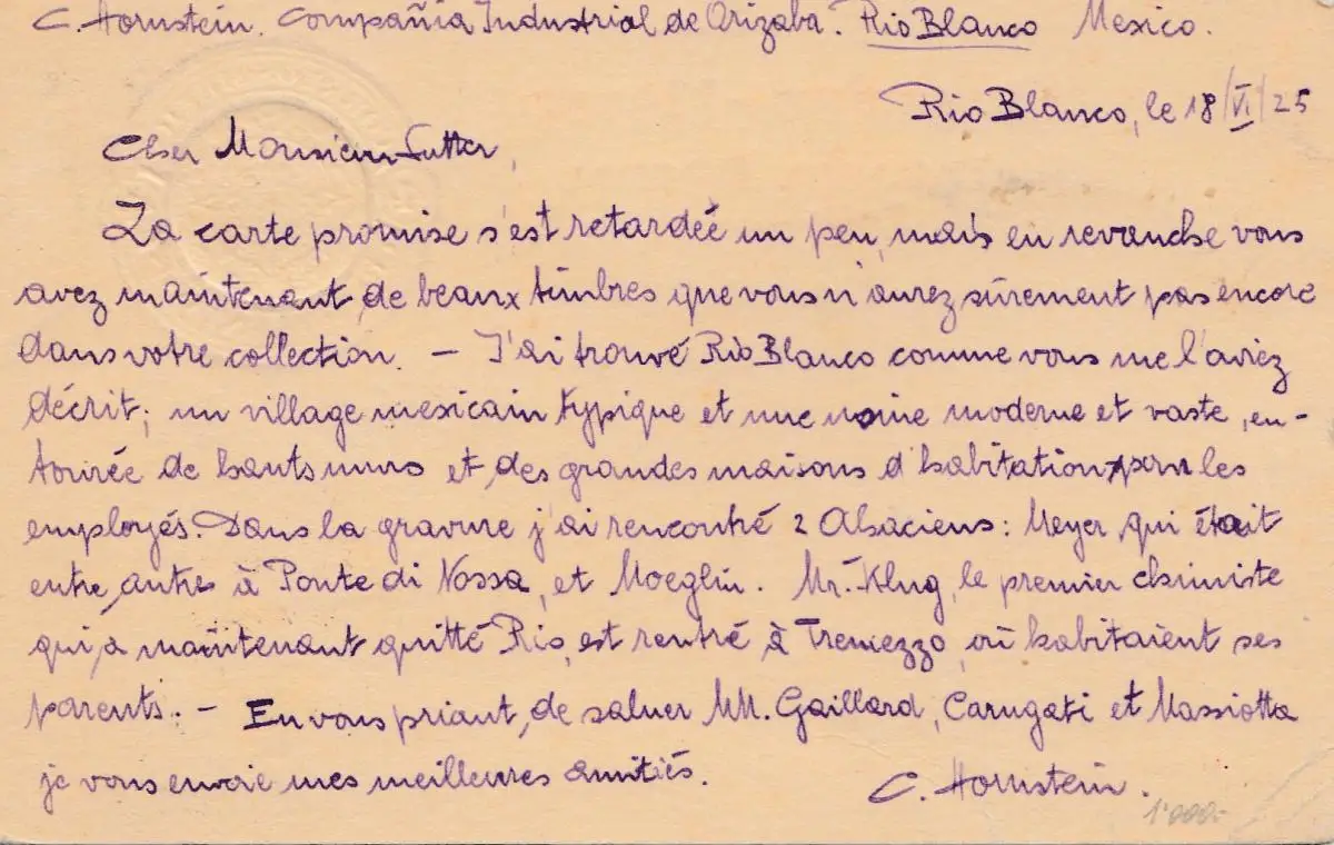 Mexico 1925: Rio Blanco post card to Italia - Portichetto