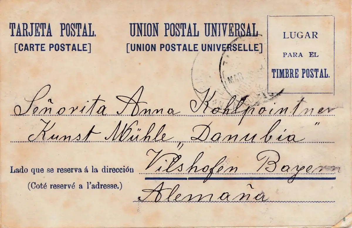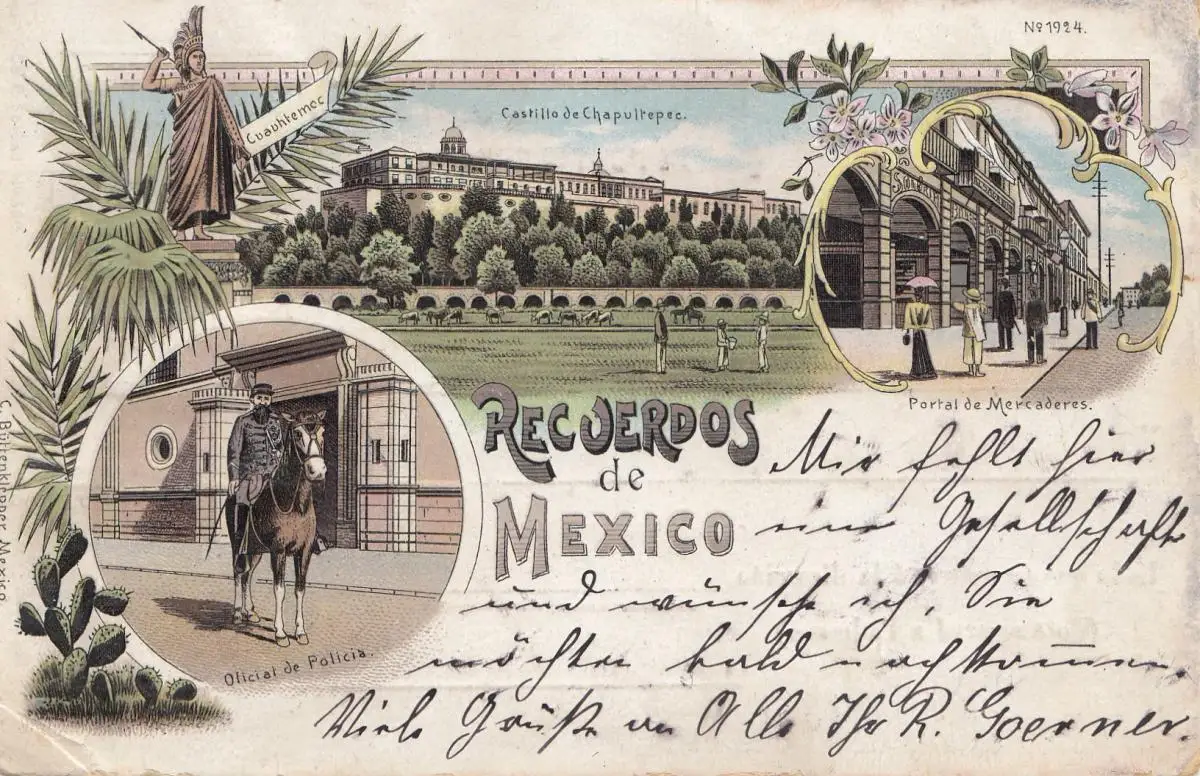 Mexico old colored post card to Vilshofen - address part extra paper?