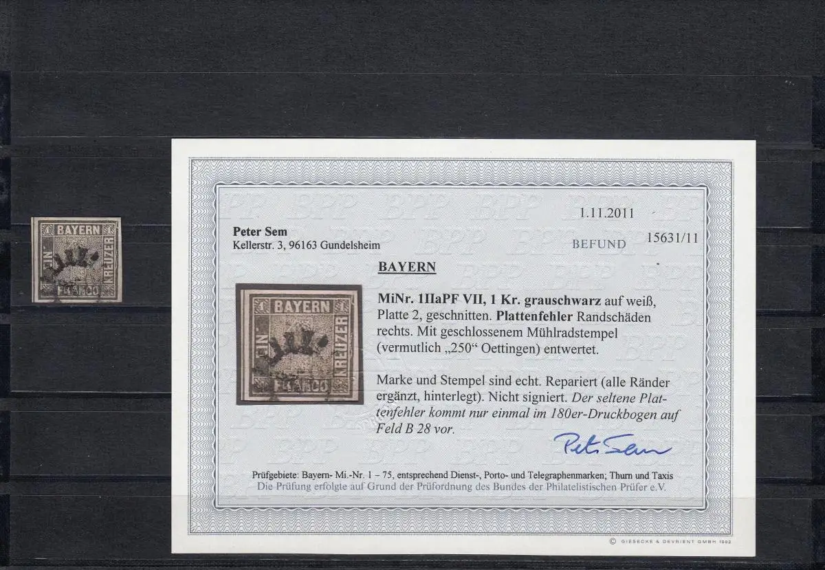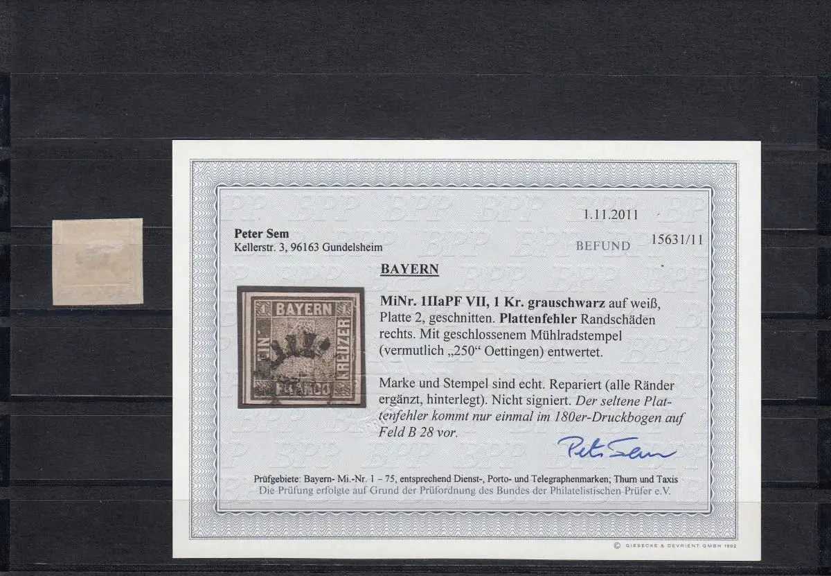 1 II a plaque 2, PF VII, tampon de roue de moulin 250 (Oettingen), résultat BPP