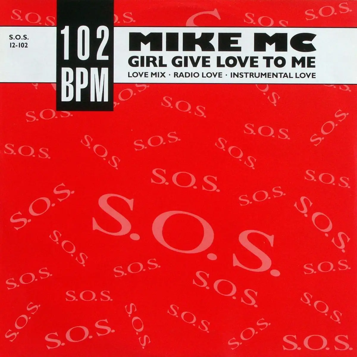 12" Maxi Mike MC - Girl Give Love To Me, Whitelabel, État plaque VG+ coque M-; Fabriqué en Allemagne Sound Of Secrets S.O.S. 12-102, Tracks [Love Mix] 5:20, [Radio Lovere] 3:42, (Instr. Love) 3:50