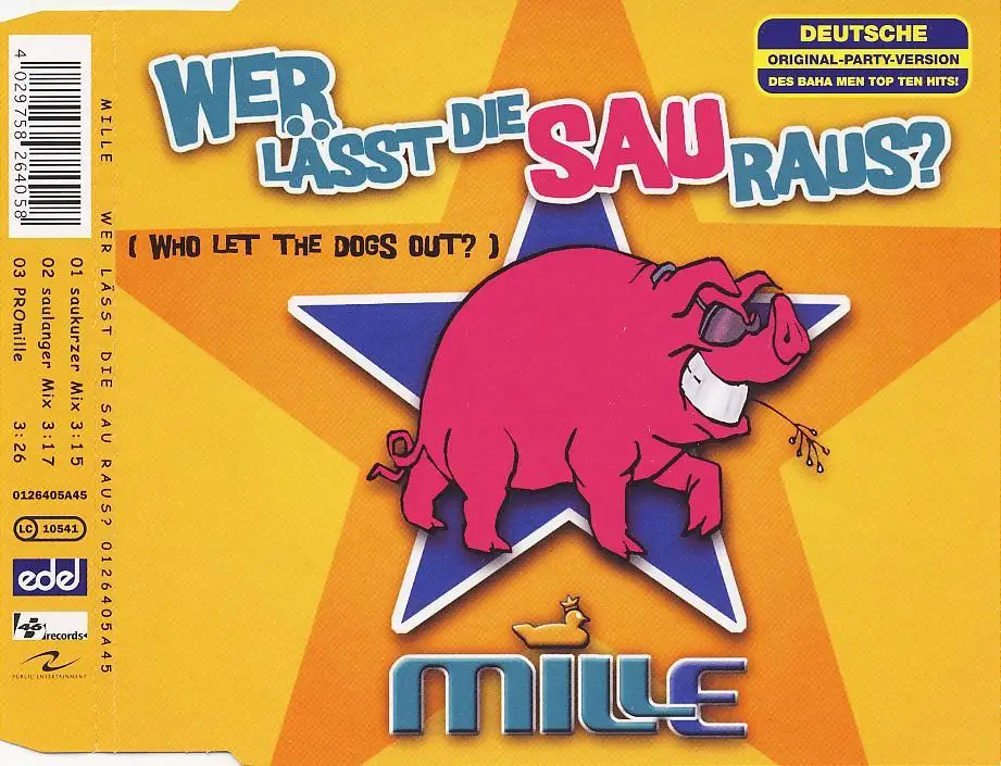 CD Single Mille - Qui laisse La Sau Raus, Baha Men - Who let the dogs out coverversion, État CD M- Hülle M; Made in Germany 2001 B 46 012640 5