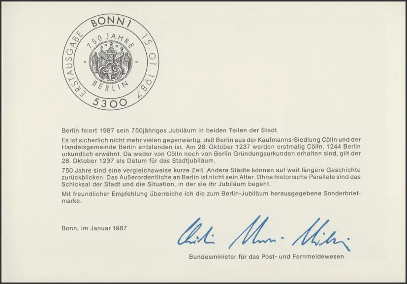 Une offre dans Timbres Cartes ministre & cartes spéciales RFA - 951 autres offres dans cette catégorie