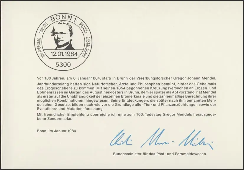 MinKa 03/1984 Gregor Johann Mendel, Mönch Héritage