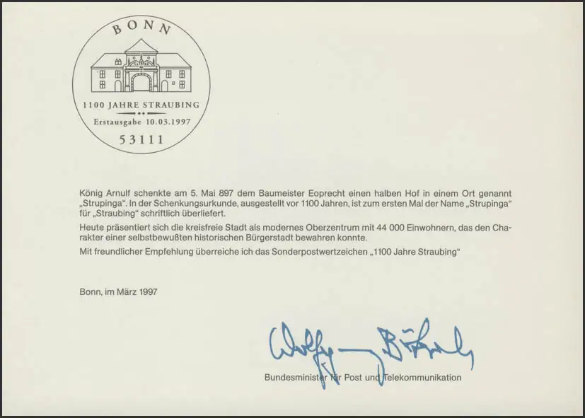 Une offre dans Timbres Cartes ministre & cartes spéciales RFA - 956 autres offres dans cette catégorie