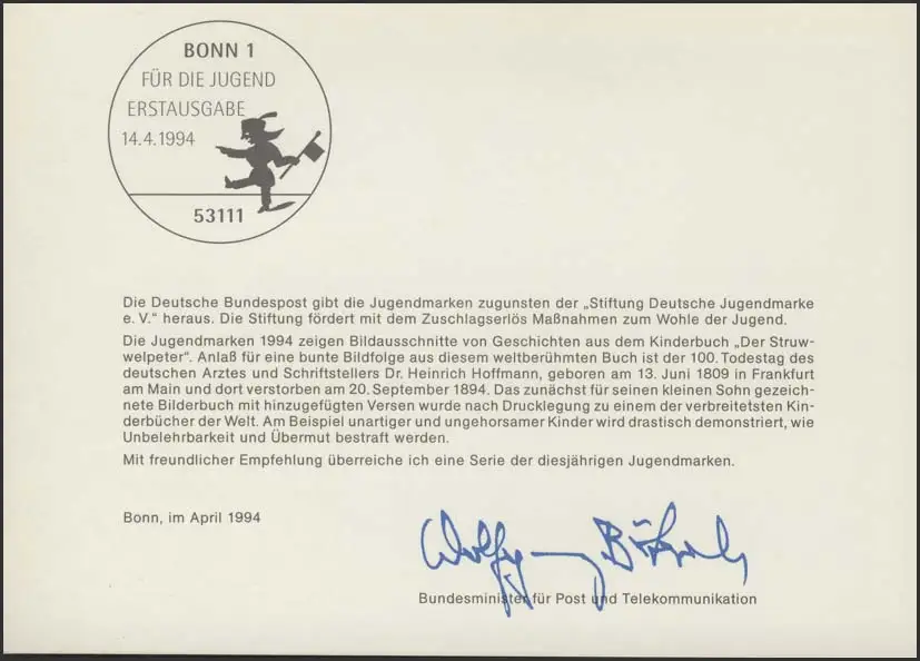 MinKa 12/1994 Jeunesse Struwwelpeter, Heinrich Hoffmann