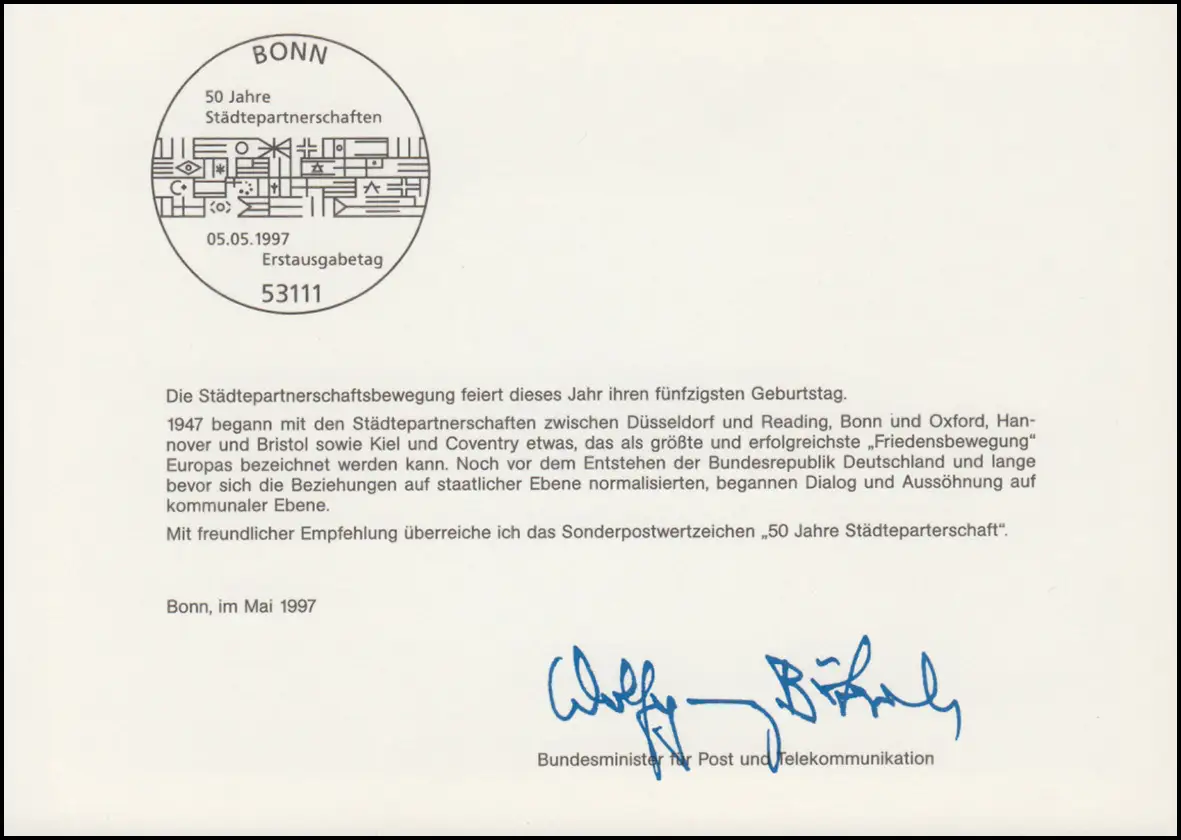 Une offre dans Timbres Cartes ministre & cartes spéciales RFA - 956 autres offres dans cette catégorie