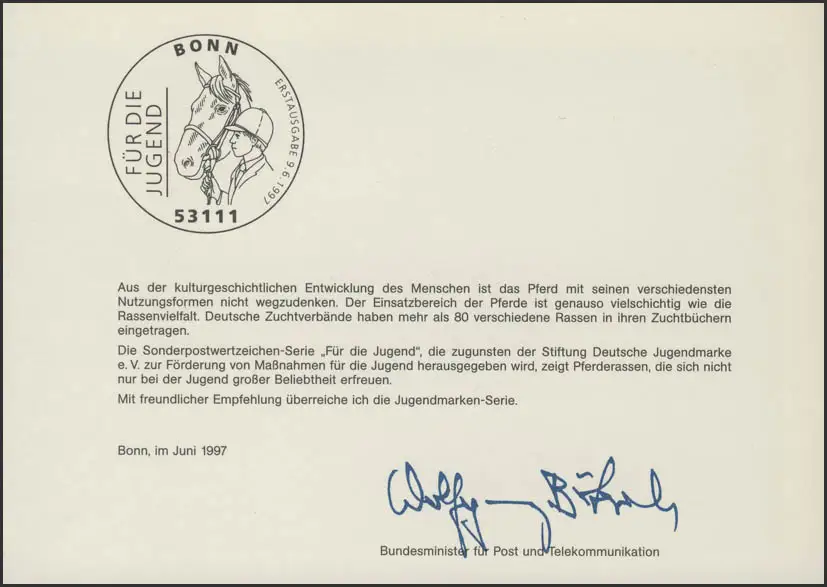 MinKa 18+18a/1997 Jeunesse: races hippiques, frises, Haflinger