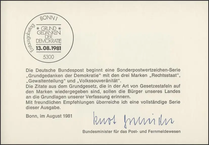 Une offre dans Timbres Cartes ministre & cartes spéciales RFA - 951 autres offres dans cette catégorie