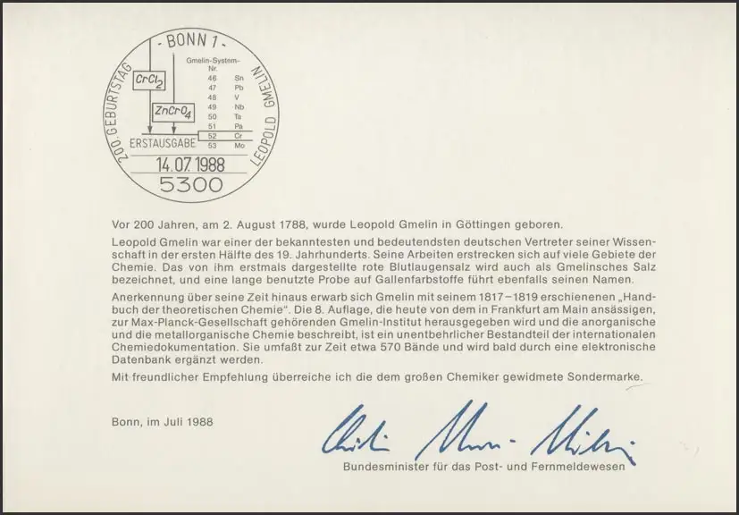 MinKa 22/1988 Leopold Gmelin, chimiste