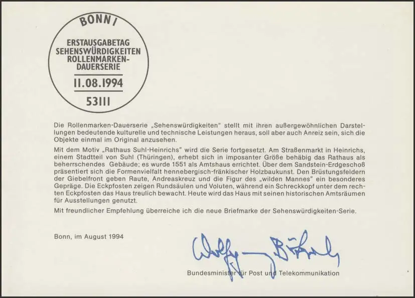 MinKa 25/1994 SWK Hôtel de ville Suhl-Heinrichs, 550 Pf.