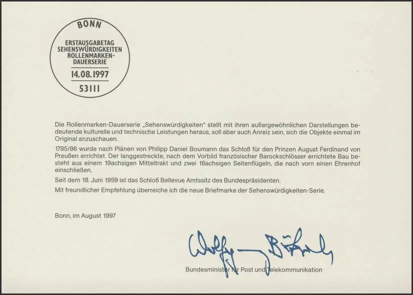 MinKa 25/1997 SWK 110 Pf. Château Bellevue Berlin