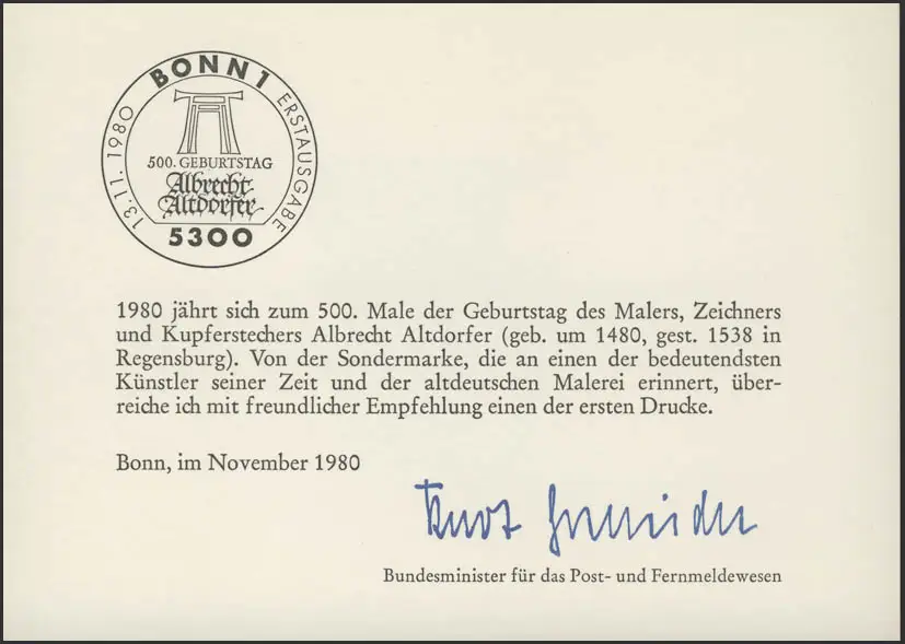 Une offre dans Timbres Cartes ministre & cartes spéciales RFA - 956 autres offres dans cette catégorie