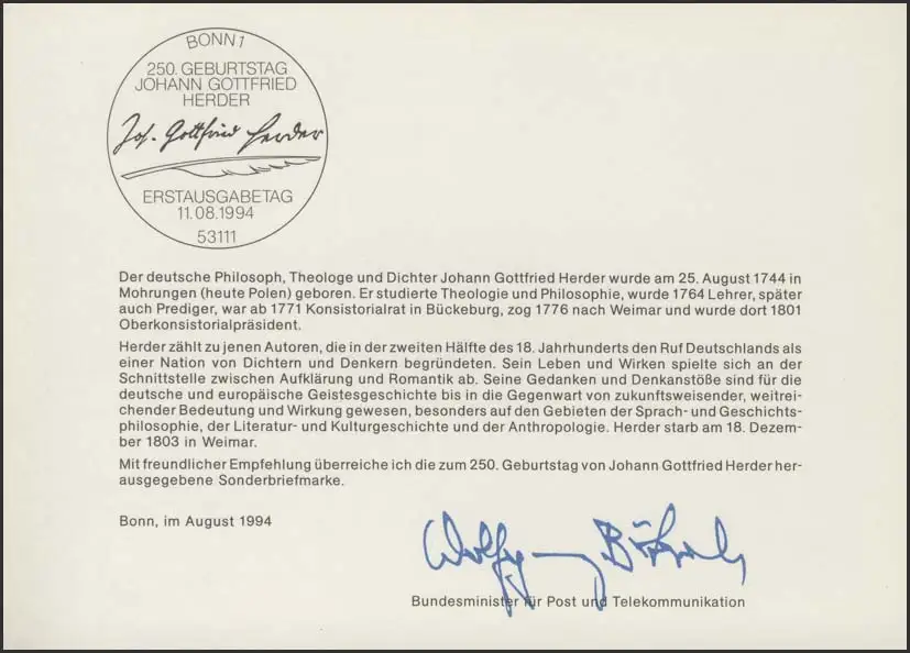 MinKa 26/1994 Johann Gottfried Herder, écrivain