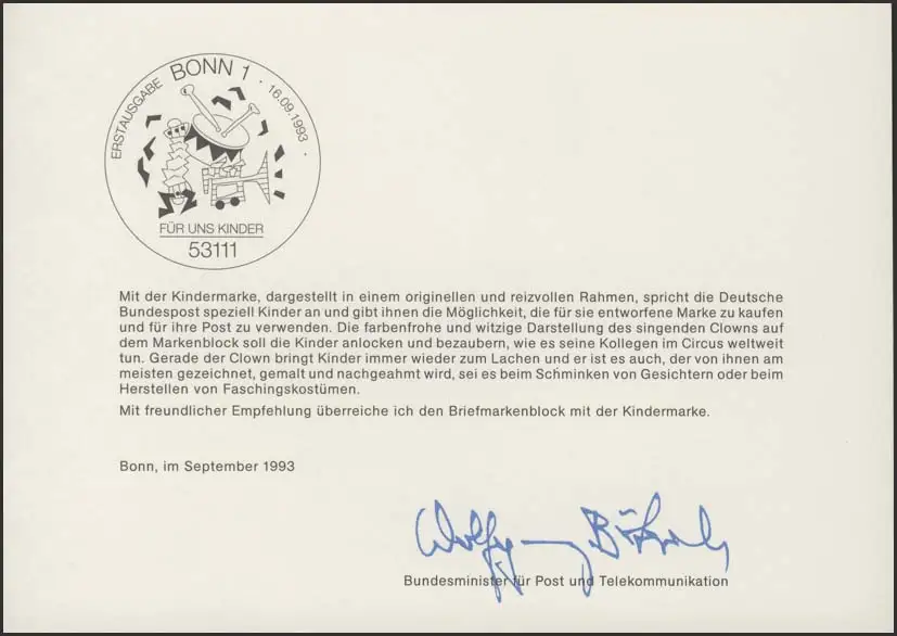 MinKa 38/1993 Bloc: Pour nous enfants, clown