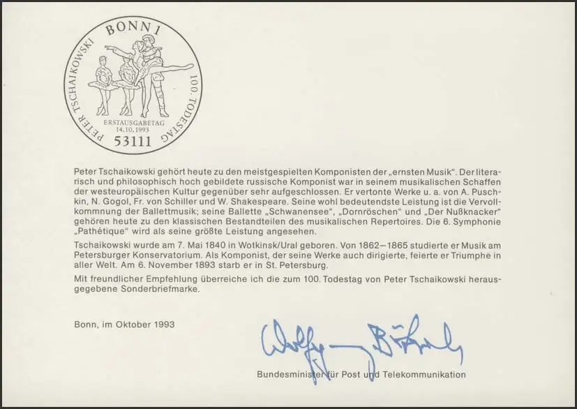 MinKa 42/1993 Peter Ilyitch Tchaïkovski, compositeur