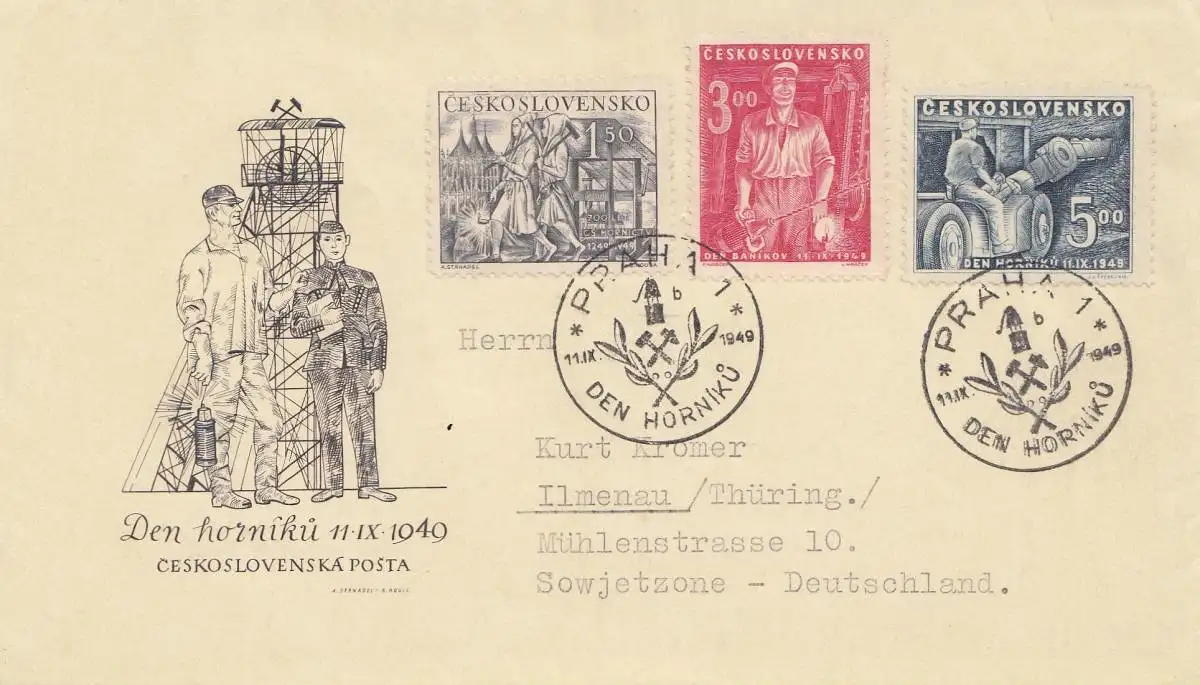 Mines: Lettre de la République tchèque à Prague en 1949 vers Ilmenau