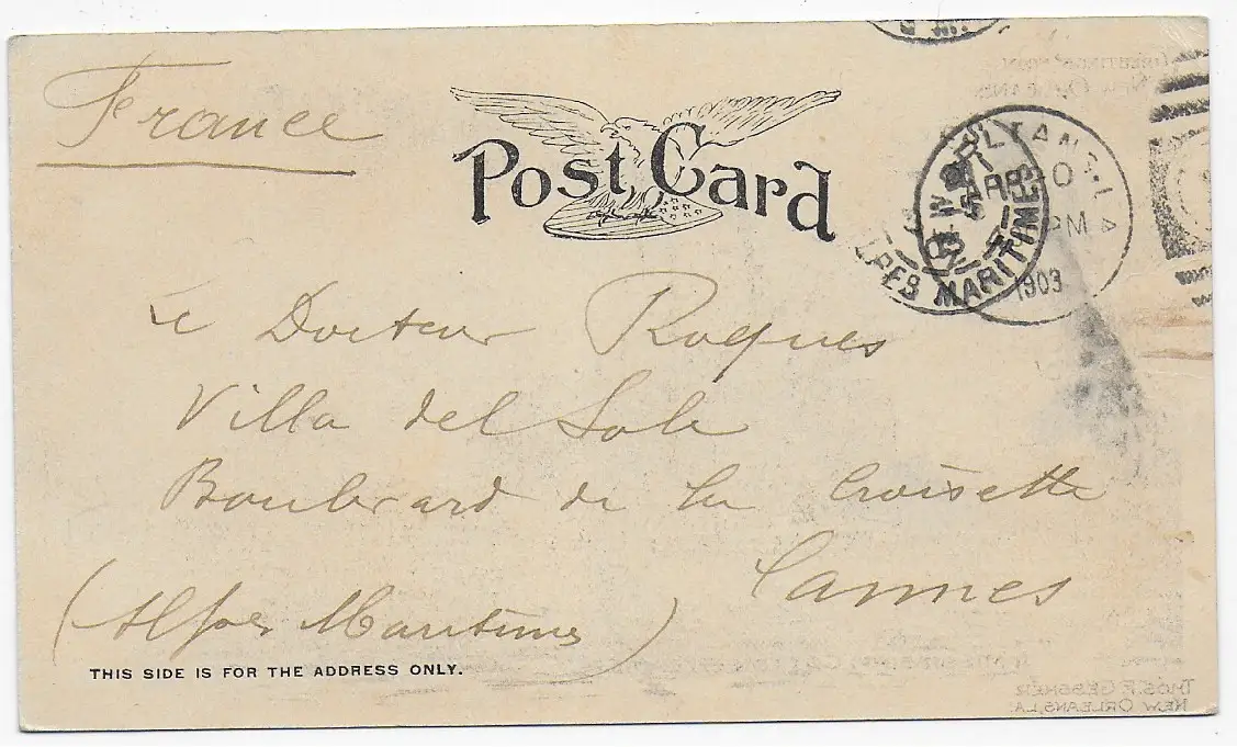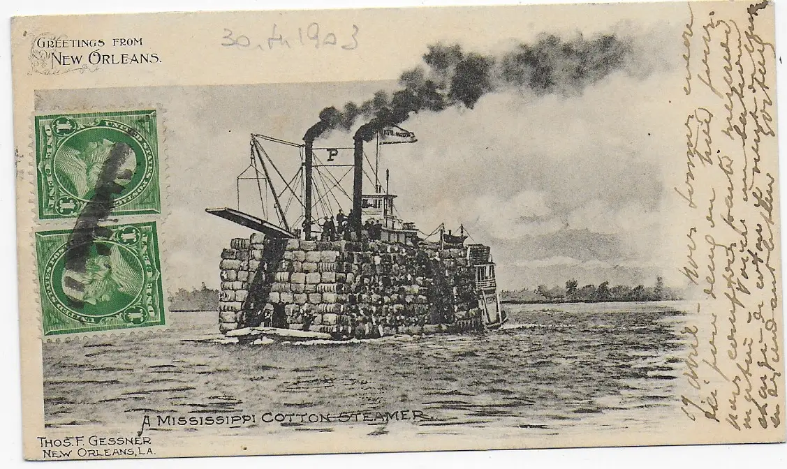 Mississippi Cotton Steamer New Orleans, 1903 to France