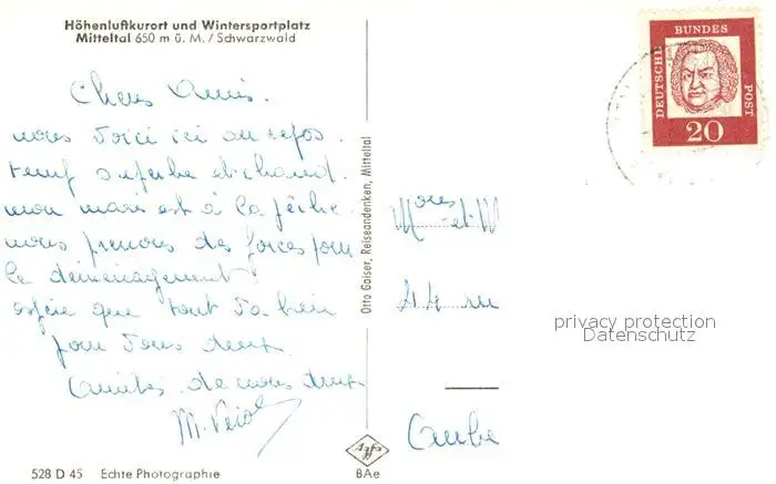 Mitteltal_Schwarzwald Mitteltal Schwarzwald postalisch gelaufen nach 1965 Erhaltung siehe scans [LiesaD40] LiesID40