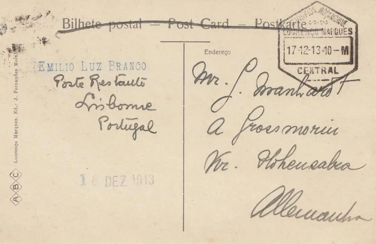 Mocambique 1913 post card Lourenco Marques Panorama No. 4 to Hohensalla