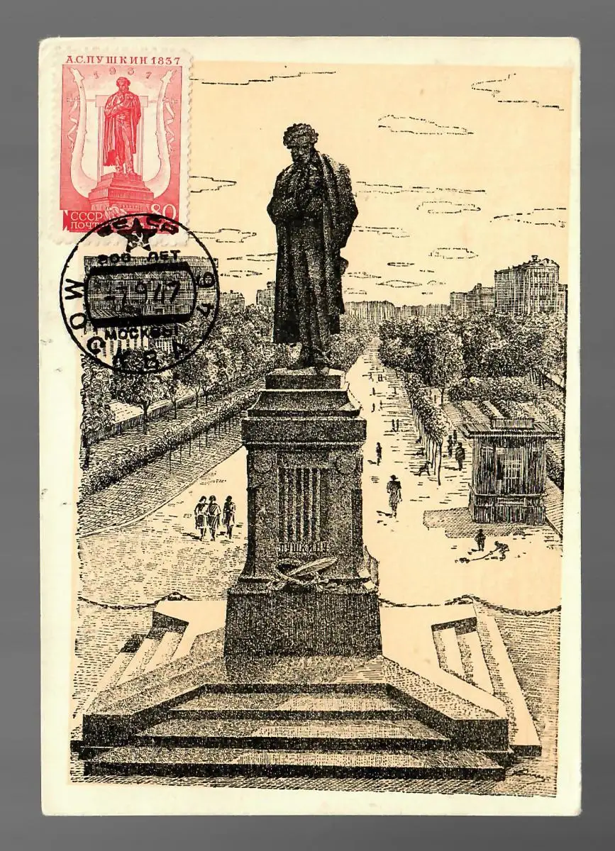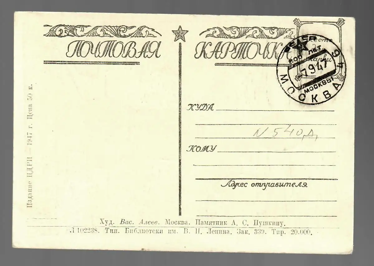 Mockba 1946/47, monument post-card Pouchin