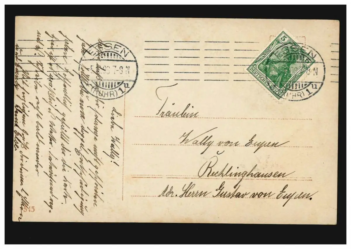 Mode AK Femme avec remorque et fleurs, maison d'édition EAS, ESSEN (RUHR) 5.10.1908