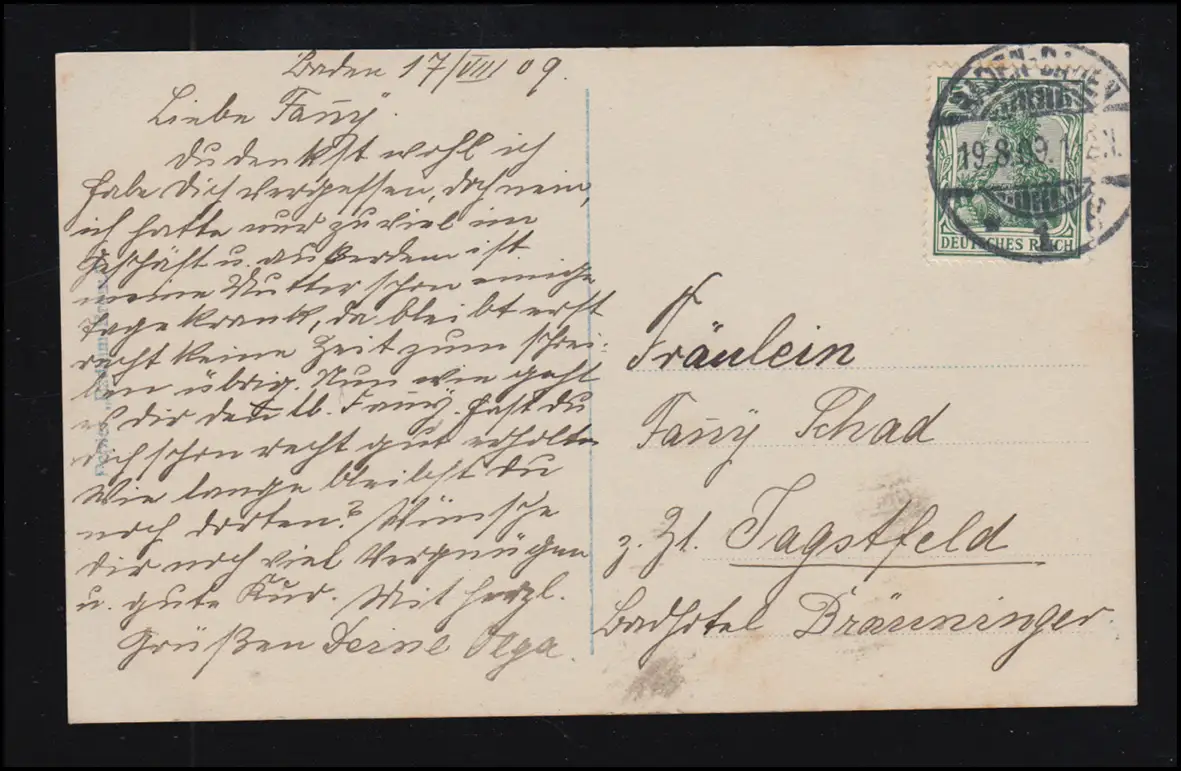 Mode-AK Femme réfléchie avec seau à pompe à eau, BADEN-BADE 19.8.1909