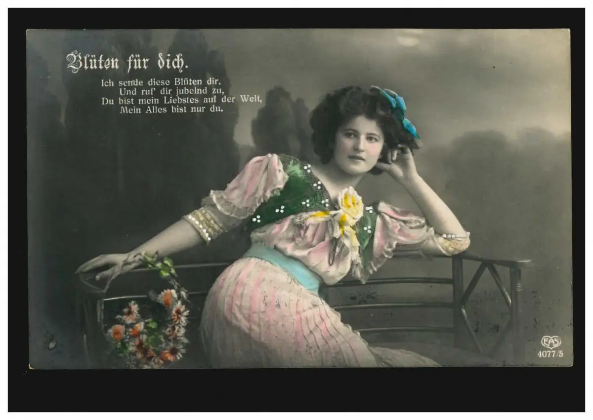 Mode AK Femme sur le banc: Fleurs pour toi! CHEMNITZ 13.1.1912 vers Belgique