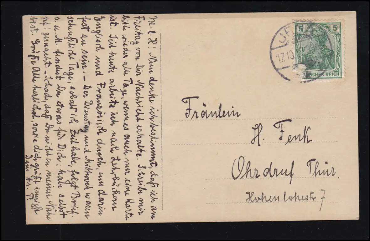 Mode AK femme souriante avec chien, JENA 17.10.1912