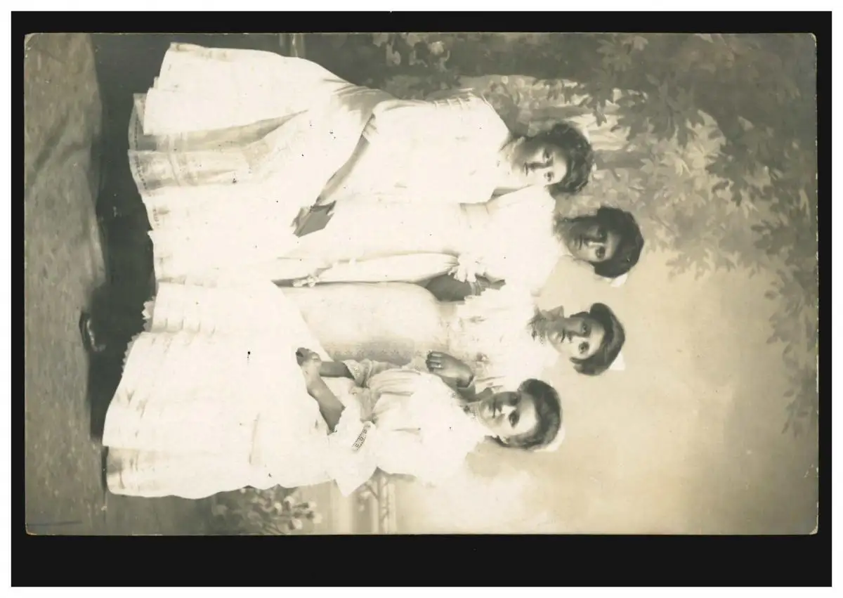 Mode AK Quatre femmes en vêtements blancs, HÉLIÉ MARIE 6.9.1910
